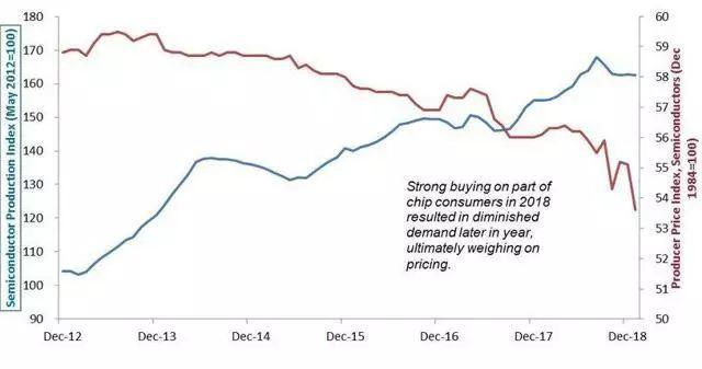早在2018年年中,我们就看到半导体行业正在酝酿挑战。作为工业半导体制成品的一大买家,中国经济正在放缓。内存芯片市场的低迷情绪也起到了一定作用,因为在这个基本上已商品化的市场,消费者在2018年初的过度购买,导致这些公司的库存过剩,而这些公司目前才刚刚被吸收。