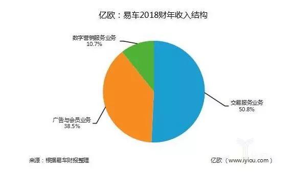 从它的业务营收来看,易车的业务主要分为三部分:广告和订阅服务,交易服务,数字营销解决方案。根据财报来看,易车三大业务板块在2018年总收入达到人民币105.80亿元。其中,易车收入主要来源于交易服务业务,占比达到50.8%;其次是广告与会员业务,占比达到38.5%;最后是来自数据营销业务,占比为10.7%。虽说这几个业务都实现了同比增长,但跟Q3季度去对比其实还是能够看出业务营收增速有所降低,这也可以说明易车的主要业务面临不小的竞争压力。