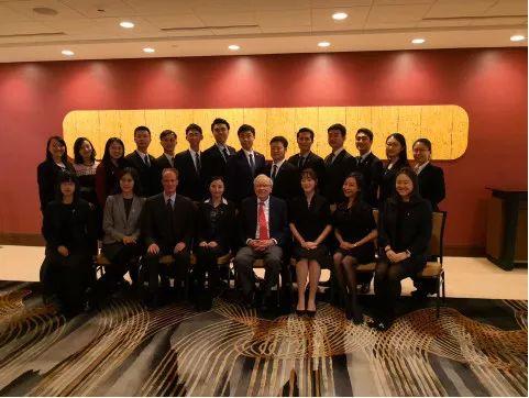 (图:巴菲特与北大光华学院老师和学生的合影,来源:北大光华管理学院)