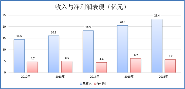 2012年-2016年期间,前程无忧业绩呈现高速增长态势,营收年年创出新高,2016年营收达到23.4亿元,同比增长13.6%。2016年,前程无忧各项业务增长强劲,在线招聘业务营收15.5亿元,较2015年的13.6亿元增长14.0%;其他人力资源服务营收8.3亿元,同比增长12.1%。