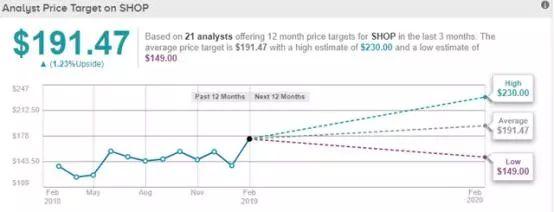 Shopify的平均目标价为191.47美元,远高于我的公允价值预期,但仍未能提供有吸引力的投资机会。