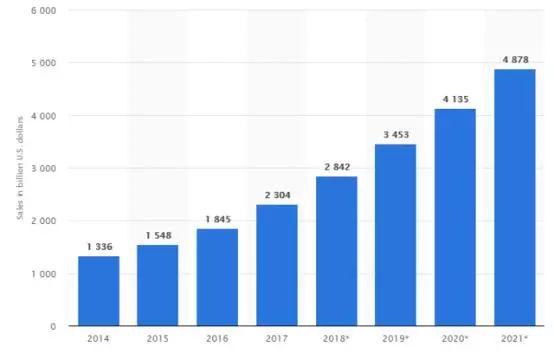 在过去5年强劲增长的背景下,零售电子商务销售预计在未来几年也将增长。预计电子商务销售的强劲增长将推动该行业的增长,预计在线销售的市场份额将在全球范围内增长。