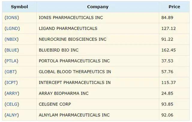 可以在ETF.com上查看更多的基金,但这七个选定的基金包括从最大到最小的基金,包括所有表现最好的生物技术行业基金。