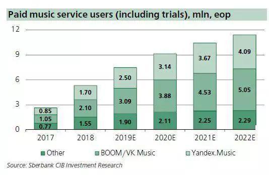 难怪在2018年,Yandex 的音乐服务用户增加了一倍(0.85百万到170万) :