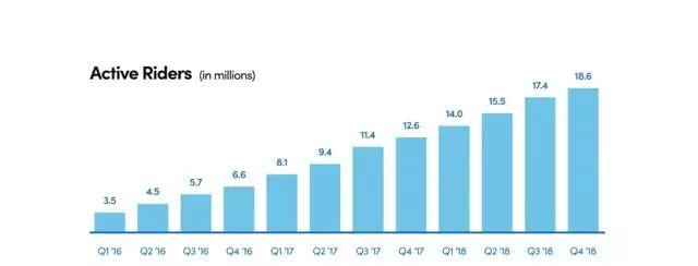 Lyft:活跃用户数。资料来源: Lyft S-1。