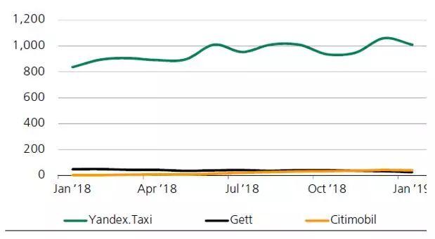 Yandex.Taxi拥有比竞争对手更多的日常活跃用户: